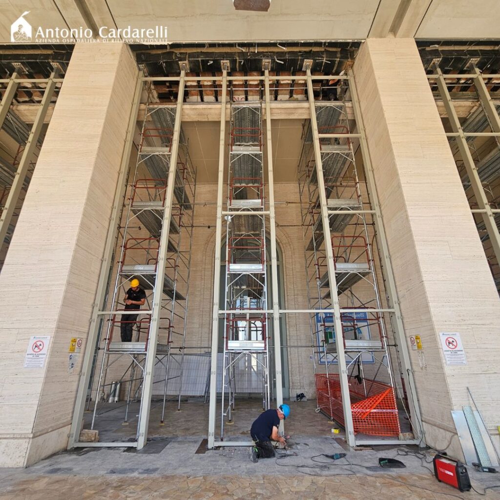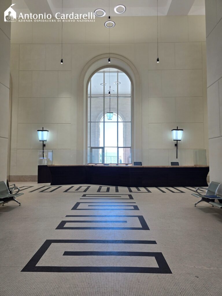 Con un investimento complessivo di 2,8 mln di euro di cui l’82% a valere sui fondi di sviluppo e coesione e il 18% di fondi propri dell’azienda ospedaliera il Cardarelli di Napoli completa dopo 15 anni di stallo, e in soli nove mesi di lavori, la ristrutturazione conservativa del Padiglione storico e monumentale di ingresso. La richiesta di finanziamento originario al FSC per 2 mln di euro risale al 2006, nel 2011 l’affidamento dell’appalto integrato, nel 2015 la risoluzione contrattuale per poi giungere con un balzo di quasi due lustri al 2024 quando c’è stato il recupero del finanziamento ex FSC 2000-2006 ed integrazione con i fondi del PSC (Piano di Sviluppo e Coesione) . Quindi ad aprile il progetto esecutivo e l’indizione della gara aggiudicazione lavori e avvio cantiere del cantiere che è stato concluso a dicembre. Oggi dunque l’inaugurazione di interventi concordati e guidati tutti dalla Soprintendenza archeologia e Belle arti e paesaggio per il Comune di Napoli) in un evento di restituzione alla comunità del restaurato Padiglione monumentale dell’ospedale Cardarelli al patrimonio della città. A partire dalle ore 10 di oggi presso lo scalone principale, è in corso dapprima la cerimonia di svelamento della scultura realizzata dall’artista Lello Esposito (un busto in pietra lavica di Antonio Cardarelli in cui spiccano gli occhi a ricordare la capacità clinica di un Maestro indiscusso della medicina nazionale, a cui segue l’inaugurazione del nuovo spazio di accoglienza al piano terra con 14 metri di spazi e strutture multimediali con il desk deputato all’informazione, l’orientamento e la presa in carico dell’utenza e la presentazione del progetto di comunicazione visiva alle pareti. Al secondo piano, nel rinnovato Salone Moriello, oggetto di restauro conservativo e rifinito con allestimenti ed impianti moderni, l’incontro dal titolo “Ospedale Cardarelli, al cuore della Comunità”.