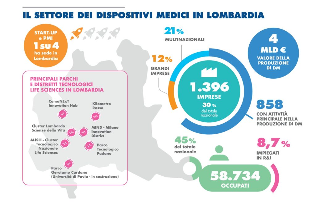 Un tessuto industriale fatto di 1.396 imprese e oltre 58.000 occupati guidando il comparto a livello nazionale e affermandosi tra i poli di eccellenza anche in Europa. A questo si aggiunge un impegno significativo in ricerca e innovazione: quasi il 10% degli addetti lavora in R&I, con investimenti pari a 401 milioni di euro – il 40% del totale nazionale – e la produzione di 858 imprese che raggiunge i 4 miliardi di euro, il 55% del dato italiano. Quasi un terzo delle imprese italiane del settore ha sede in Lombardia, generando oltre la metà della produzione nazionale. Questi numeri, presentati oggi a Milano nel corso dell’evento “Dispositivi medici: innovazione e imprese per la Sanità del futuro”, realizzato in collaborazione con Assolombarda e Confindustria Lombardia, raccontano un settore che non è solo un motore industriale, ma anche una leva strategica per la salute pubblica, perché introduce sul territorio tecnologie capaci di migliorare la qualità della vita delle persone e l’efficienza del sistema sanitario.