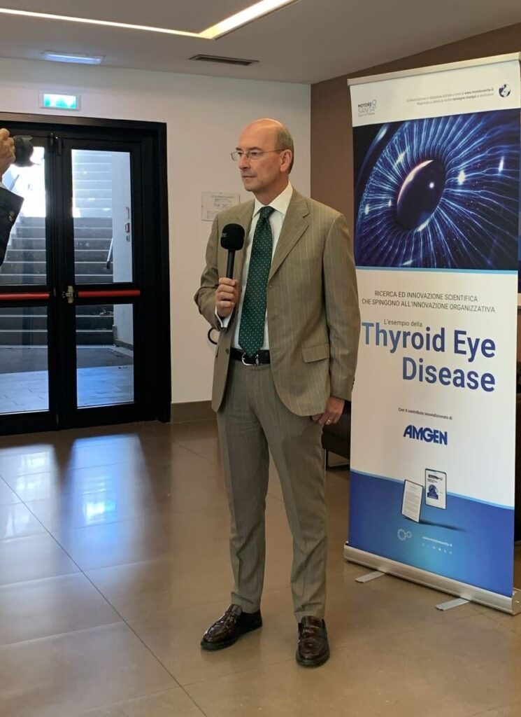 Francesco Giorgino, Direttore dell’unità operativa complessa di Medicina Interna, Andrologia e Malattie Metaboliche presso l’Azienda ospedaliera universitaria Policlinico Bari, ha evidenziato l’importanza della multiprofessionalità nell’affrontare la mattia oculare tiroidea. Multiprofessionalità intesa come stretta collaborazione tra endocrinologi, oculisti, radiologi e chirurghi, in un contesto coordinato che garantisca una gestione armonizzata del processo diagnostico e terapeutico.