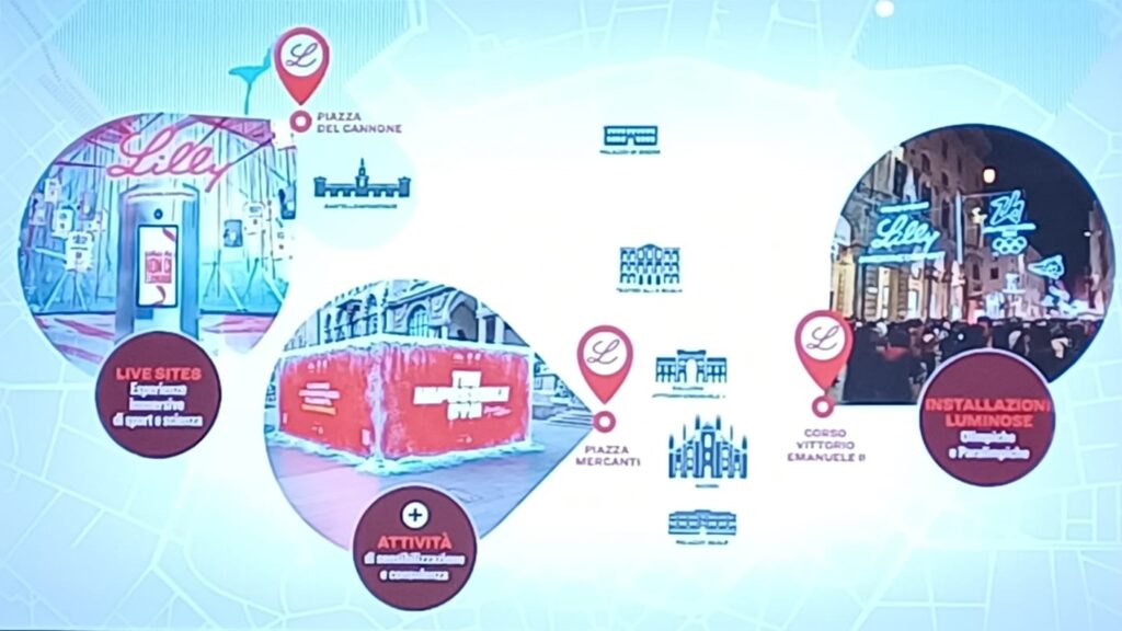Le iniziative speciali promosse da Lilly (vedi infografica qui sotto) saranno presentate nel dettaglio in conferenza stampa il prossimo 6 febbraio, giornata inaugurale dei Giochi, e contestualmente aperte al pubblico. Nel cuore storico della città di Milano, in Corso Vittorio Emanuele II, le installazioni luminose ispirate ai 22 pittogrammi delle discipline olimpiche e paralimpiche invernali illumineranno l’area pedonale, e i decori arriveranno fino a via Orefici. Un preludio visivo che accompagnerà cittadini e visitatori fino al 15 marzo.