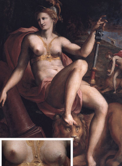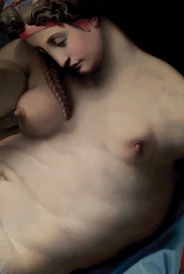 “La Notte” è anche un olio su pannello (Michele di Rodolfo del Ghirlandaio, 1555-1565) di trasposizione pittorica dell’omonima statua scolpita in marmo, ed è ancora più evidente la malformazione al seno sinistro. Anche la figura femminile raffigurata nell’Allegoria della Fortezza mostra un seno sinistro sovradimensionato. Nel Rinascimento il tumore al seno, simbolo della bellezza femminile, è stato lo strumento di rappresentazione della malattia.