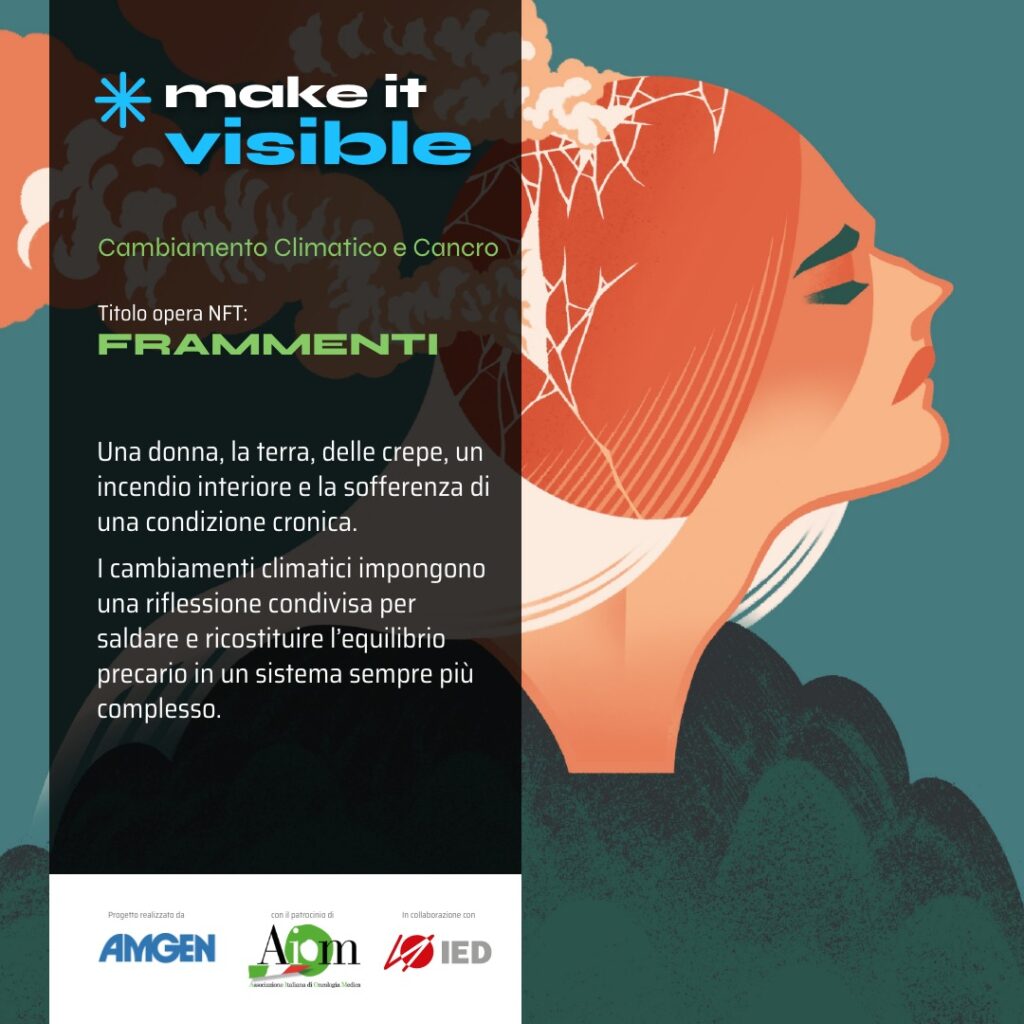 “Crediamo nell’importanza di creare, sin dalle più giovani generazioni, la cultura dei corretti stili di vita, della prevenzione di patologie come, per esempio, quelle oncologiche e del valore del progresso scientifico- spiega Maria Luce Vegna, Direttore Medico di Amgen Italia. – “Ecco perché con #makeitvisible abbiamo esplorato come il linguaggio originale e molto attuale della cryptoart possa raccontare i temi complessi legati alle patologie oncologiche da cui spesso si rifugge. Contaminando il linguaggio scientifico con i codici di quello artistico e digitale, vogliamo avvicinare i più giovani al mondo della Ricerca.”
